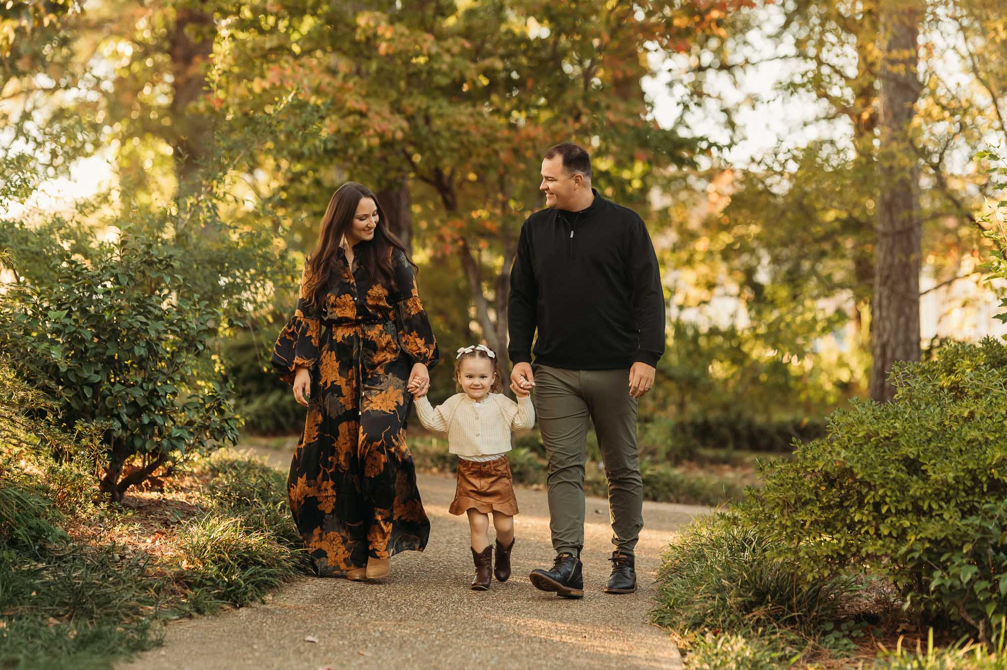 This little girl brought so much personality to the session. Whether she was giggling in her dad’s arms or confidently walking between her parents hand-in-hand, her joy was contagious. As a family photographer in Tyler Texas, my goal is always to guide families just enough. This way, moments feel organic while still creating images that are timeless and meaningful.