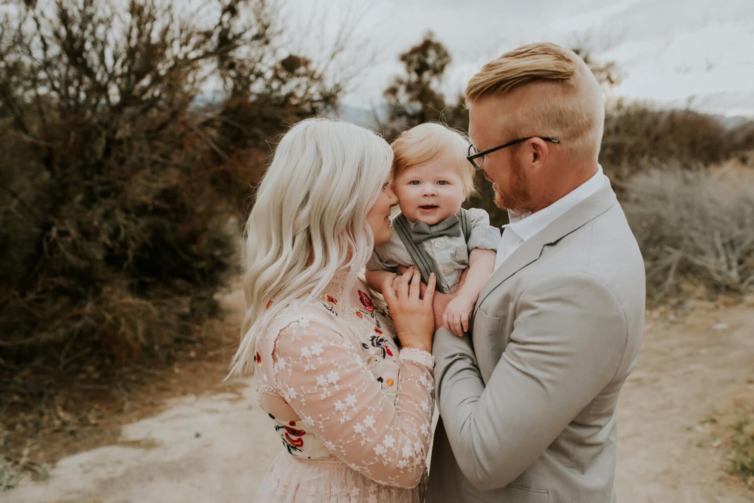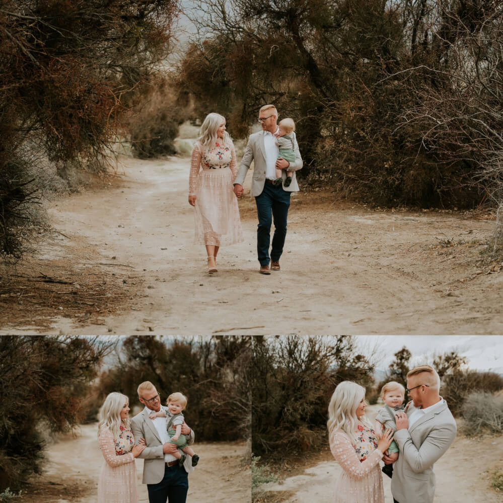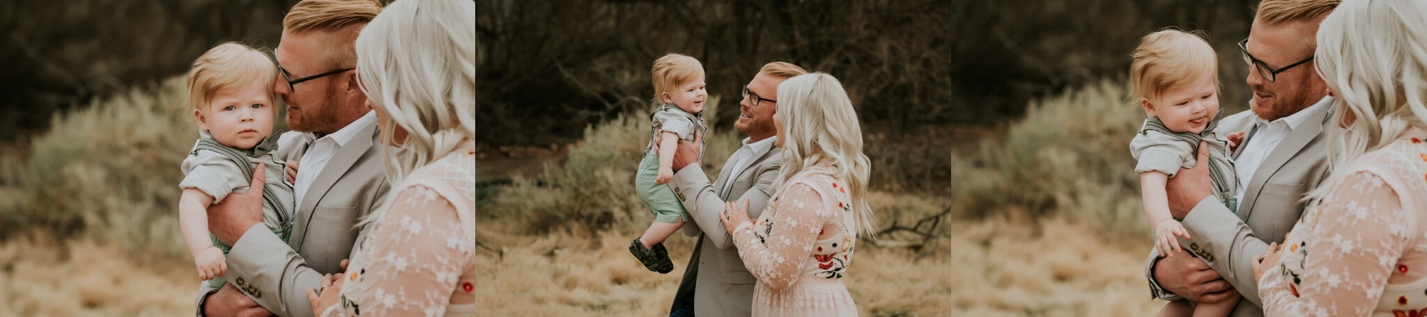 Even though we live in the middle of a gigantic desert, there really are some beautiful unseen places that make the perfect setting for a Family Portrait Session. The Desert National Wildlife Refuge is one of my favorite places to shoot. This quiet little oasis yields gorgeous little fields of green and amazing light. Pair that with this adorable new family of three, and we have the makings of a beautiful Family Portrait Session. I absolutely just adore this family session. Their wardrobe style is perfection and their little man was an absolute show stopper. I always forget how easy new families are to photograph. I am so use to photographing larger families a big majority of the time, so when I get a new family in front of my camera, its definitely a nice change of pace.