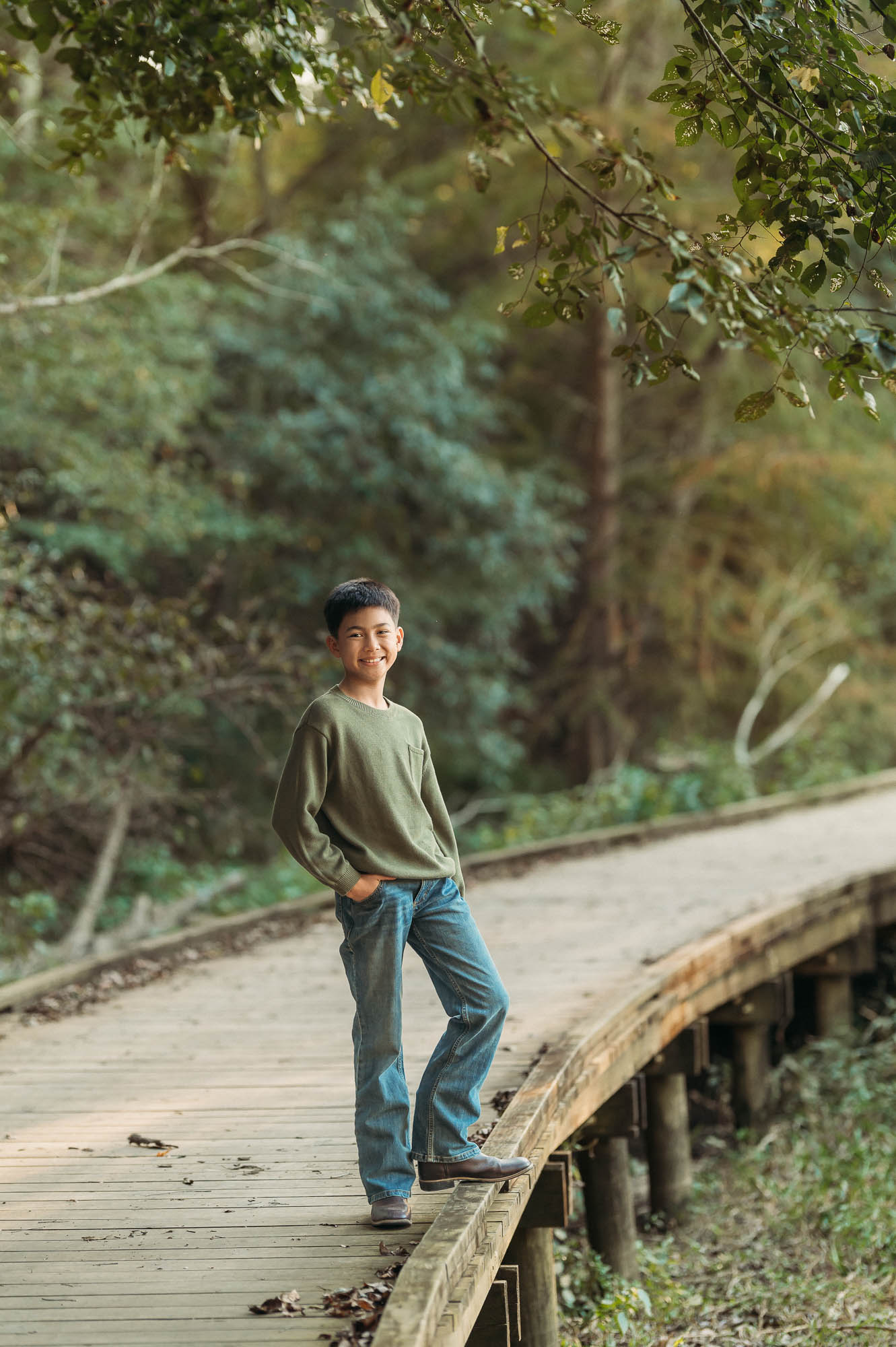 Outdoor locations around Tyler offer incredible variety, from wooden bridges to wide open fields and peaceful ponds. They’re perfect for families who want photos that feel natural, connected, and full of life.