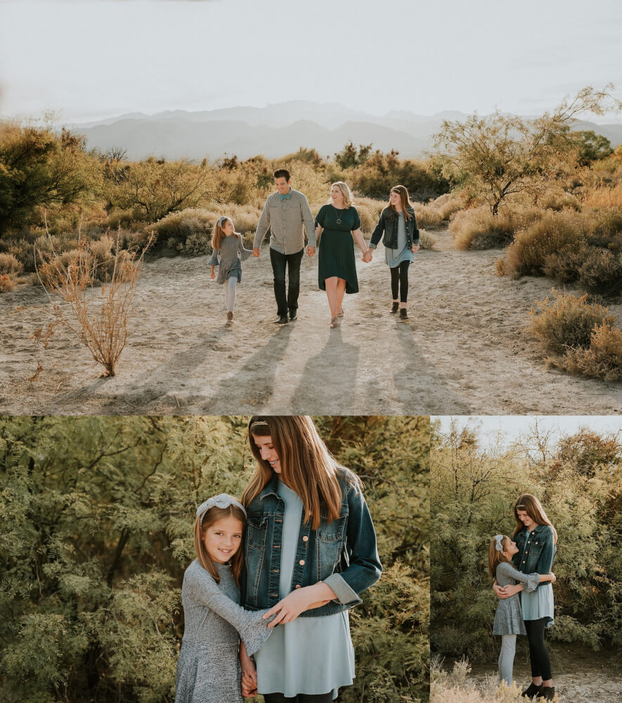 We had some pretty incredible golden light all throughout their session. The jewel tones of their wardrobe complimented the earthy fall tones of the desert. The Cardin Family was such a joy to photograph. They are so photogenic. They also followed all my interactive guides to create some great candid moments. It was really difficult to narrow down their gallery. It was definitely one of my more larger galleries given to a client. I even had a hard time to choosing what to share in this blog post. Sometimes, I want to share them all! I often find that my Family Portrait Sessions tell an incredible story of love when looking at a series of images versus a few.