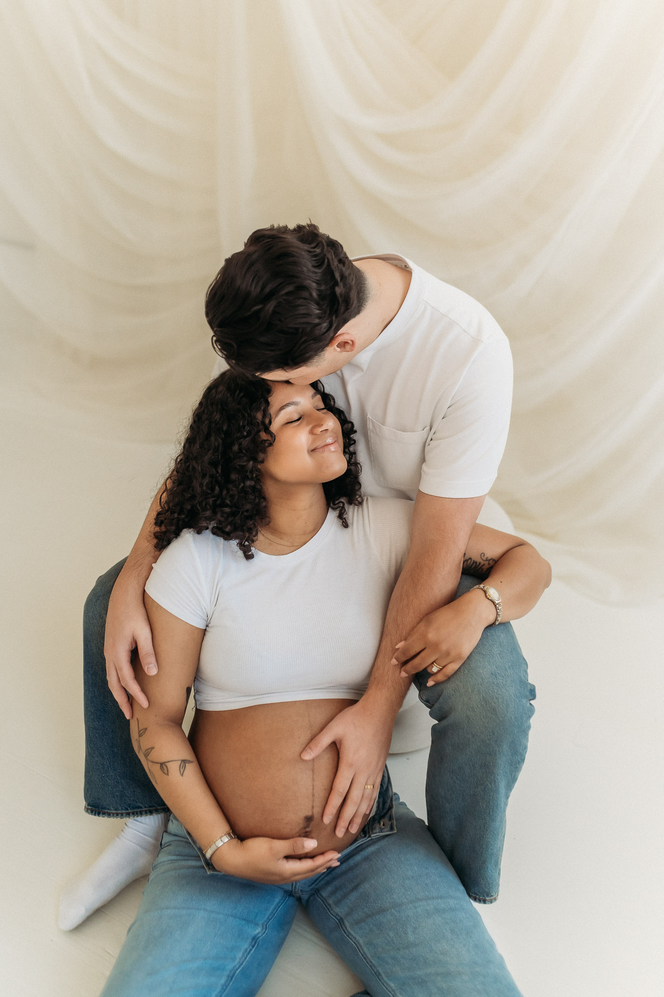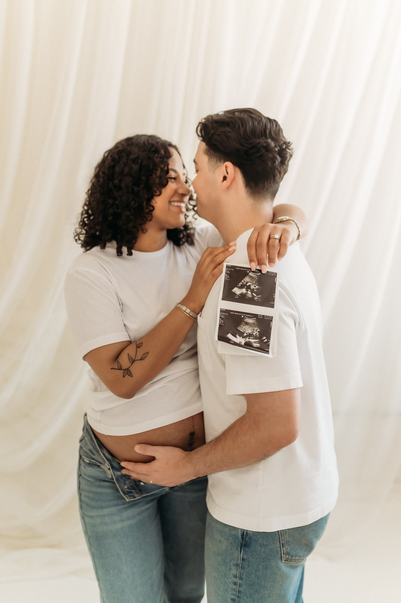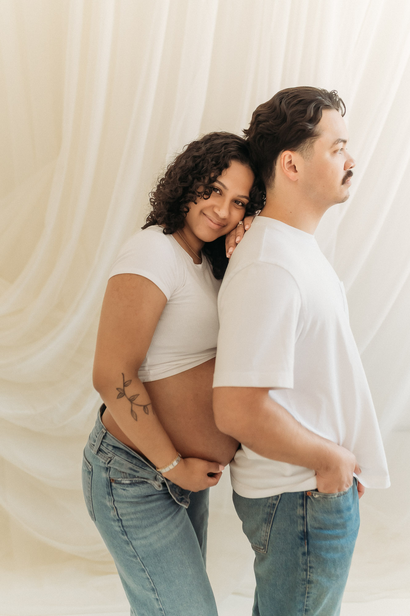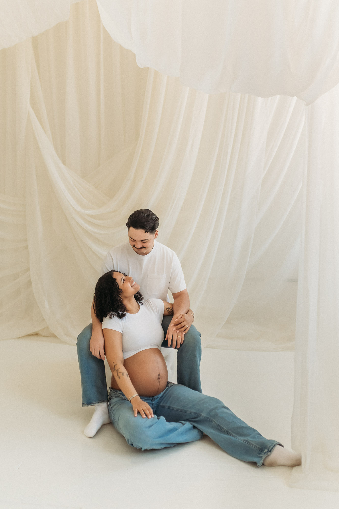 The Atelier Studio provided the perfect setting for this session. With its soft natural light, warm textures, and clean, airy aesthetic, it allowed their connection and excitement to truly shine. The neutral tones and cozy atmosphere created an intimate space that felt both timeless and elegant—everything you want in a maternity session. In particular, choosing a Lindale Texas Maternity Photographer for your shoot ensures this special environment is beautifully captured.