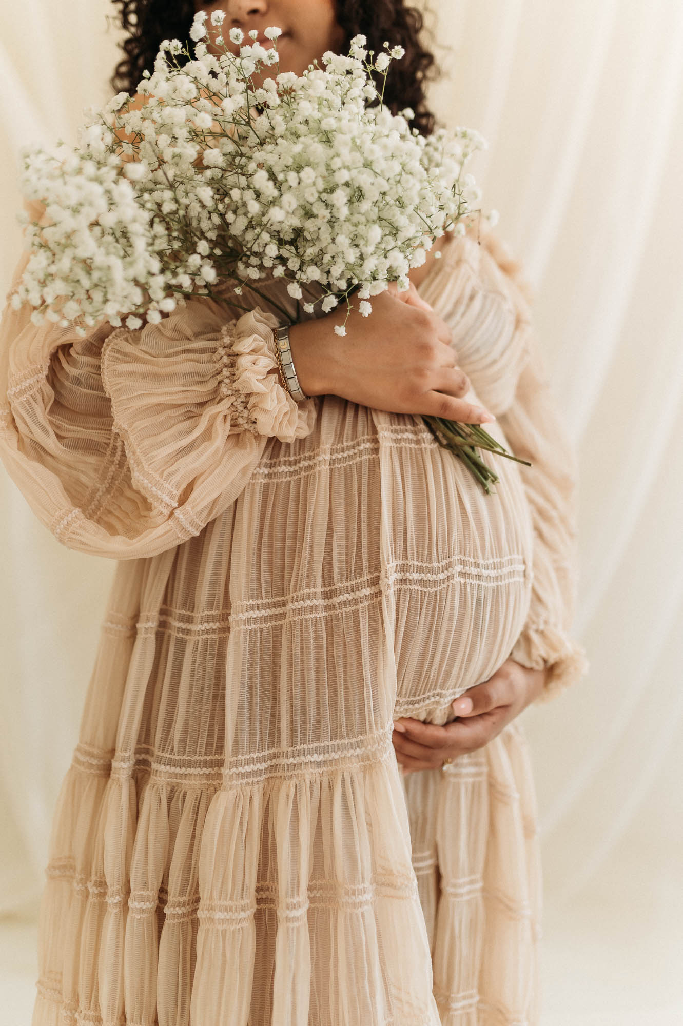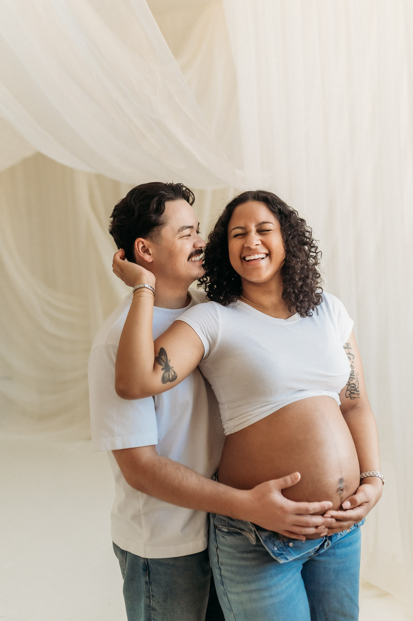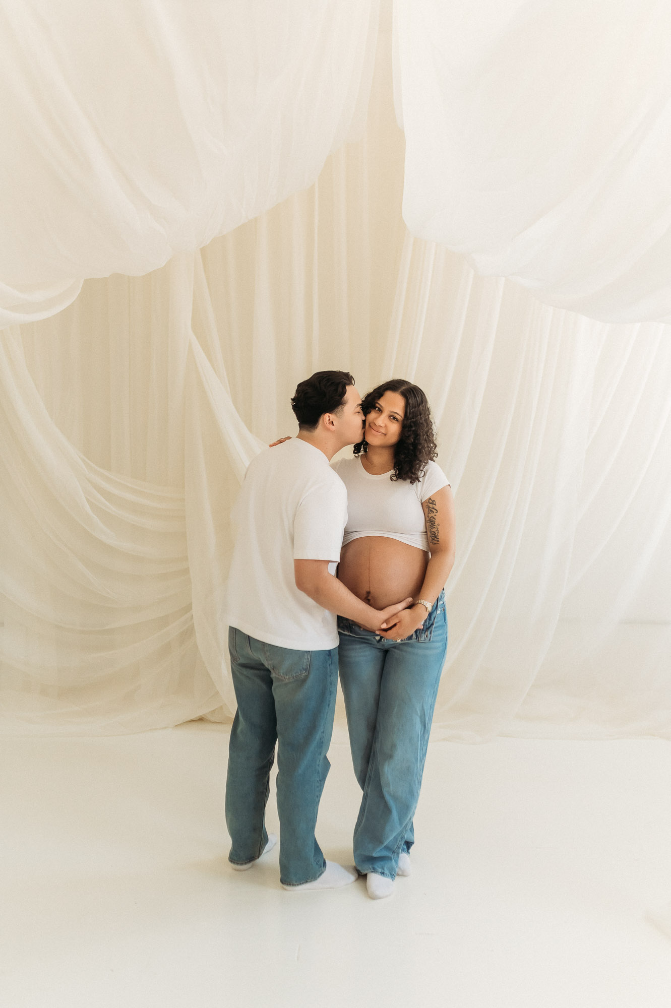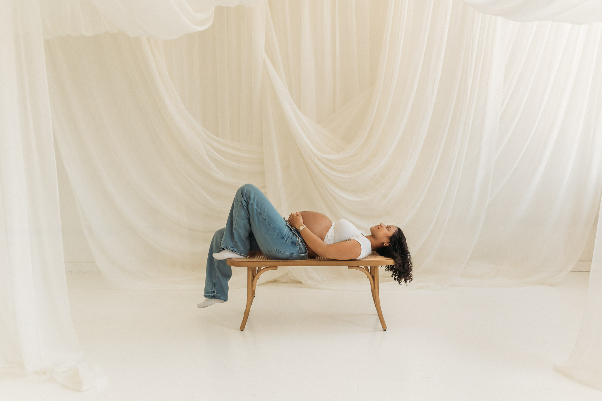 The Atelier Studio provided the perfect setting for this session. With its soft natural light, warm textures, and clean, airy aesthetic, it allowed their connection and excitement to truly shine. The neutral tones and cozy atmosphere created an intimate space that felt both timeless and elegant—everything you want in a maternity session. In particular, choosing a Lindale Texas Maternity Photographer for your shoot ensures this special environment is beautifully captured.