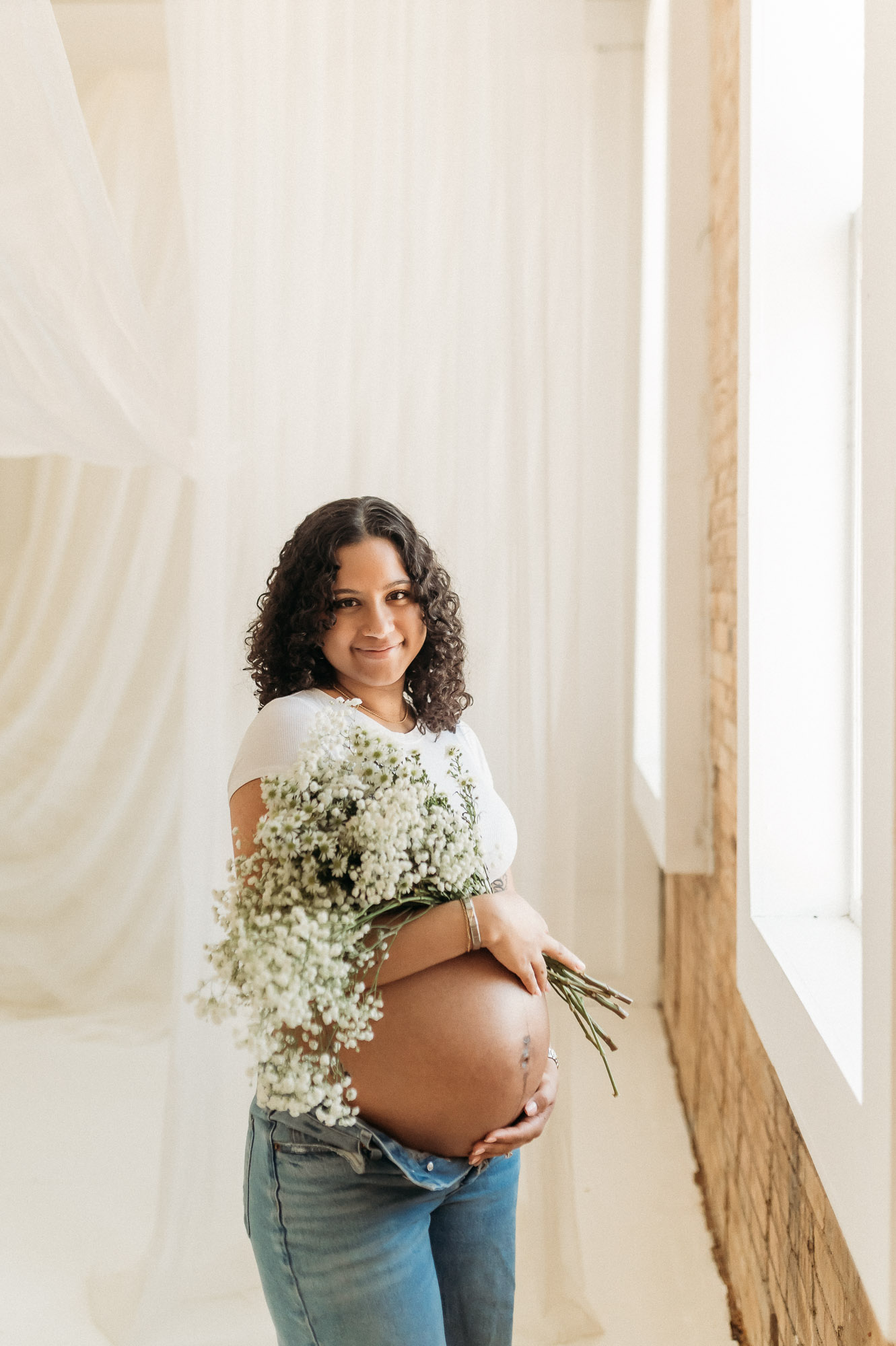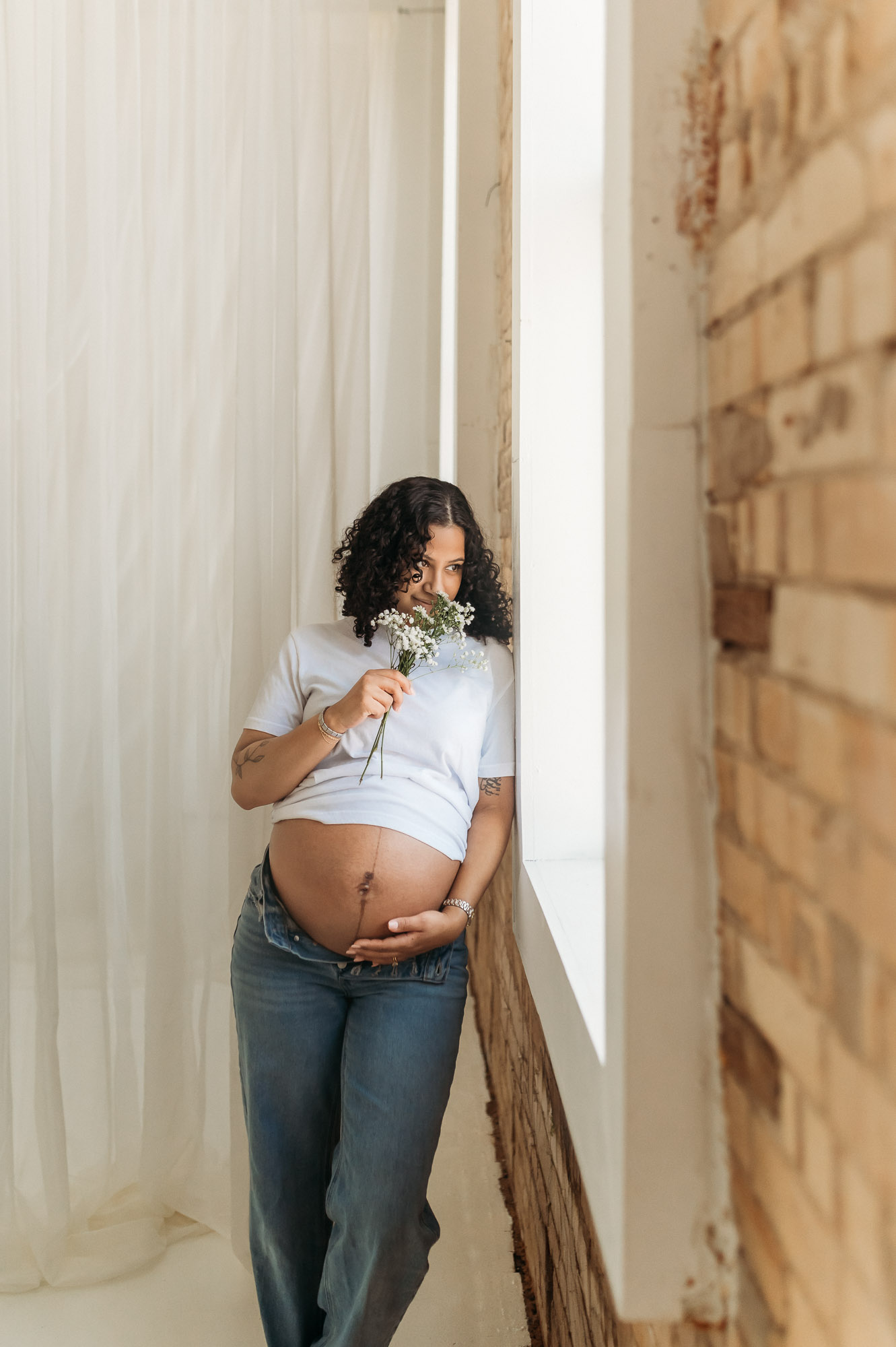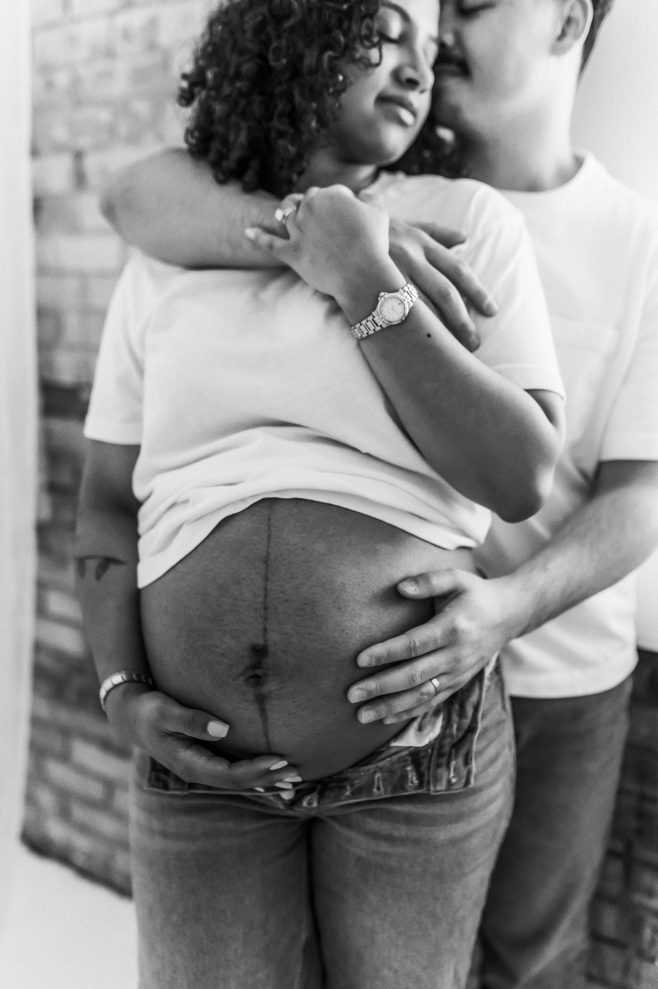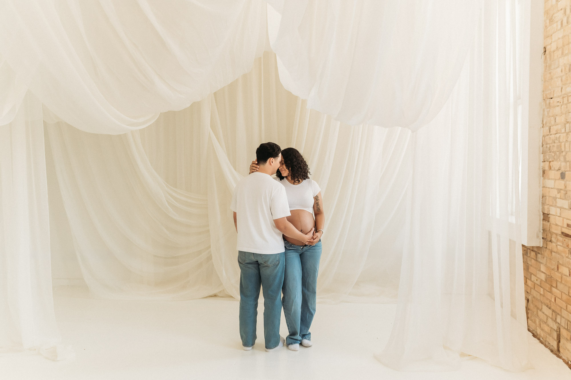 The Atelier Studio provided the perfect setting for this session. With its soft natural light, warm textures, and clean, airy aesthetic, it allowed their connection and excitement to truly shine. The neutral tones and cozy atmosphere created an intimate space that felt both timeless and elegant—everything you want in a maternity session. In particular, choosing a Lindale Texas Maternity Photographer for your shoot ensures this special environment is beautifully captured.