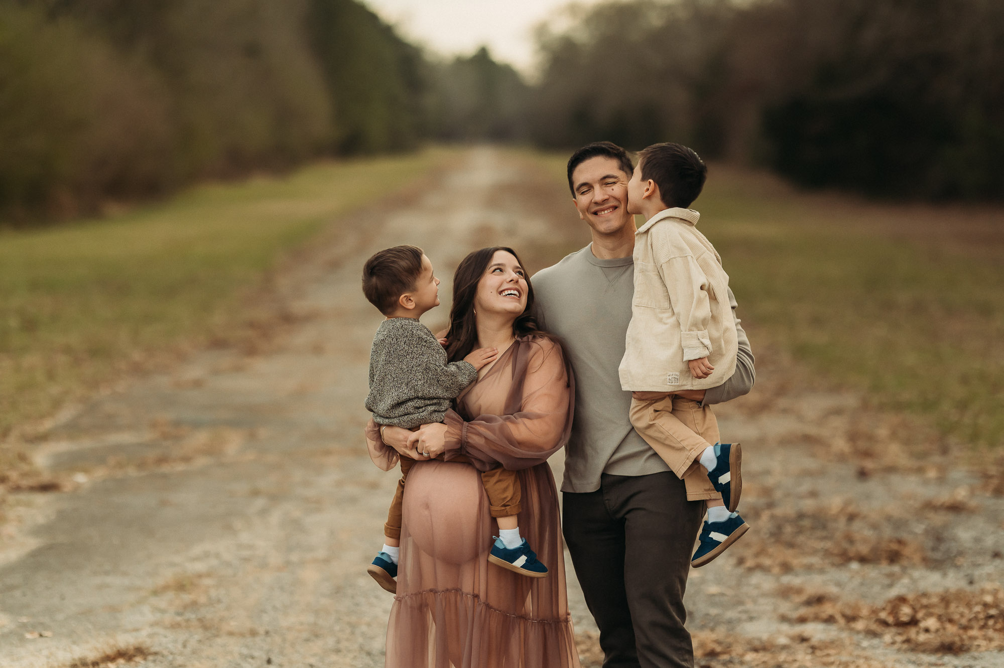One of my favorite parts of this session was watching how naturally this family interacted. From quiet moments between mom and dad to sweet kisses from little ones on mom’s belly, every interaction felt genuine. As a Tyler Texas Maternity Photographer, I guide families gently while leaving space for real moments to unfold—those are always the images clients cherish most.