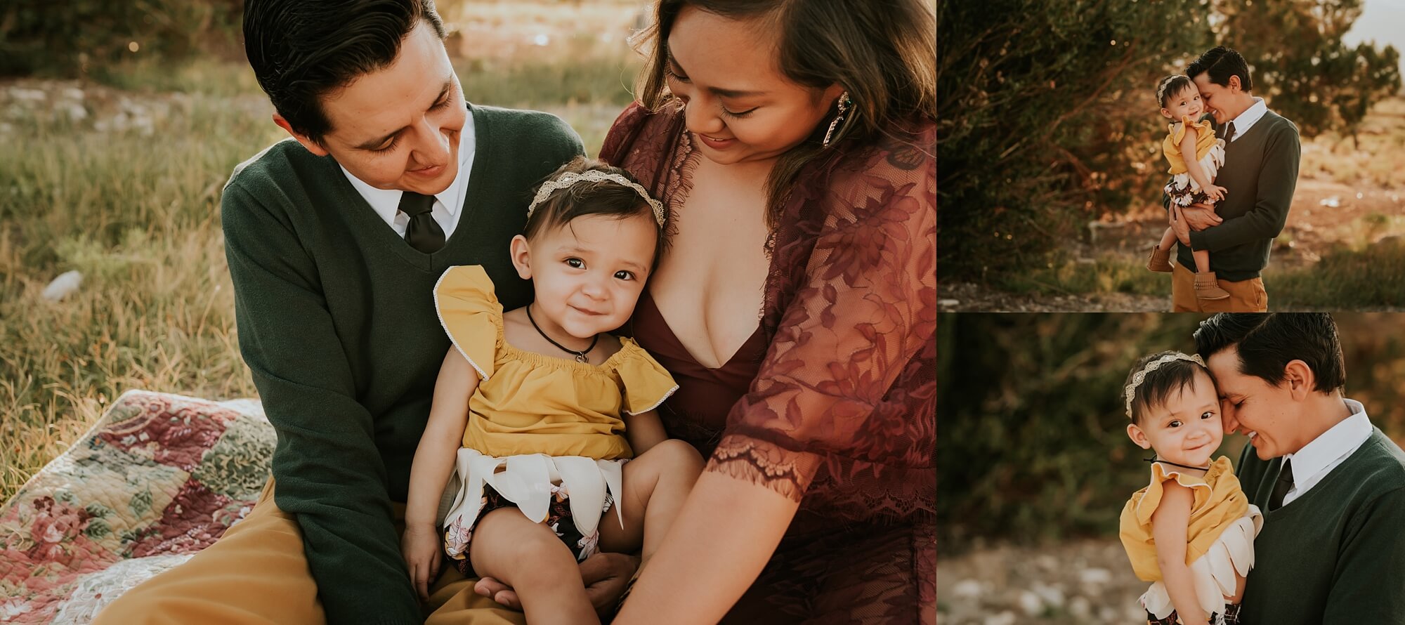 The Vest Family is an adorable new family of three! We worked on styling the colors of their session to compliment this location and they arrived in style. They were such a breeze to photograph and their little one gave me tons of great smiles and a few frowns. This is such a fun stage to photograph because there are so many emotions that can occur. They are inquisitive, yet cautious, happy yet can easily be frightened. Plus I just adored her little outfit! Mom looked absolutely stunning in this burgundy lace gown. We had so much fun throughout their session. We even ended it on a super silly note. Check out a few of my favorites from their session. I hope you enjoy!